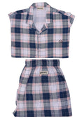 Elevate your bedtime routine with the Moonlit Rose Cotton Set, crafted for women who value both comfort and style. This nightwear ensemble includes a short-sleeve shirt and full-length pants, made from a soft, breathable cotton blend. The modern pink-and-black stripe pattern adds a chic flair, while the relaxed fit ensures ease of movement for a restful night’s sleep. Whether you’re winding down after a long day or enjoying a lazy weekend morning, this set promises a cozy and stylish experience.